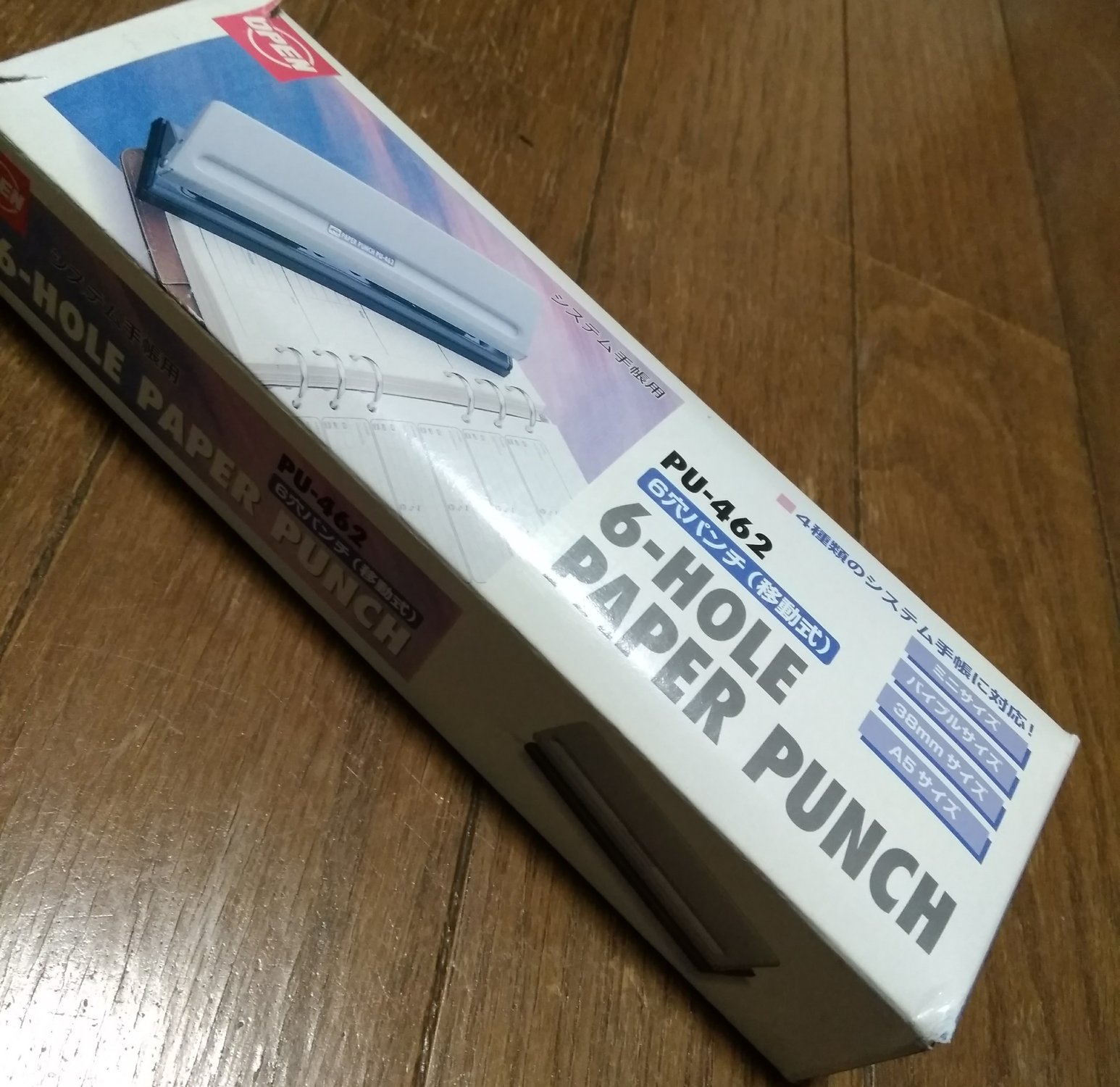 システム手帳のアクセサリーの最後は、パンチを取り上げてみましょう。パンチといえば、いわゆる二穴のパンチを思い出す方が多いと思いますが、システム手帳で自作リフィルを作るとなると、このパンチはほぼ必須品となりますからね。