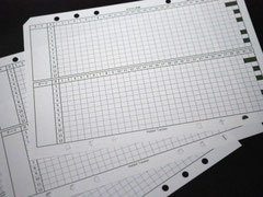 真ん中に時間軸(24時間、朝3時から翌朝3時まで)がある片面がドット方眼、反対の面が方眼です。キンマリスノーホワイト。