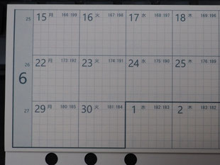 また、日付の右にある165:200などの数値は、その年での経過日数:残日数を示しています。