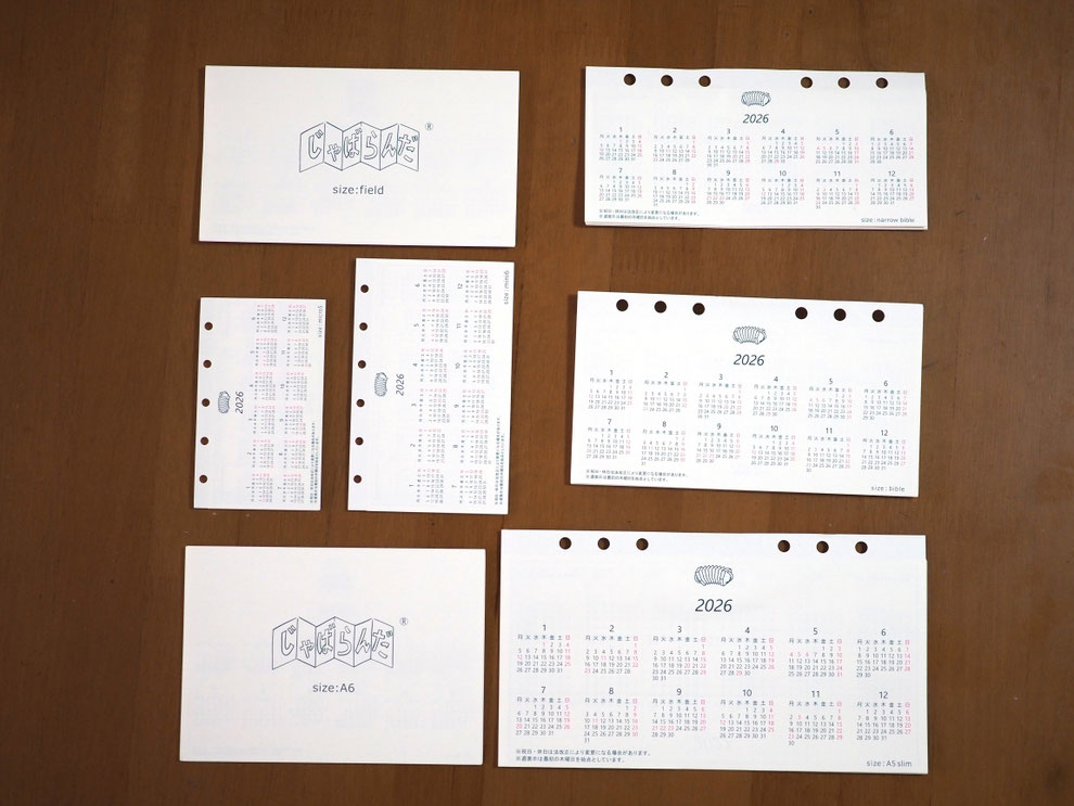 | じゃばらんだA5スリム2026 | 216×116 | 27×32 | 5.5×5.5 | 6穴(一部なしも発売) | オフセット2色 | 1,600円 |